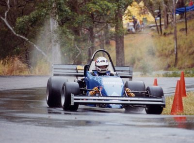 By the time we arrived the clouds were down low and the area was getting a good drenching. The first cars were away at 8:30 despite the wet track, but drivers of open cars and those on slicks were given the option of waiting for a while to see if conditions improved. After most of the field had their first wet run, the rain eased and the track dried somewhat, and most competitors were fortunate enough to get one dry run in for the day.